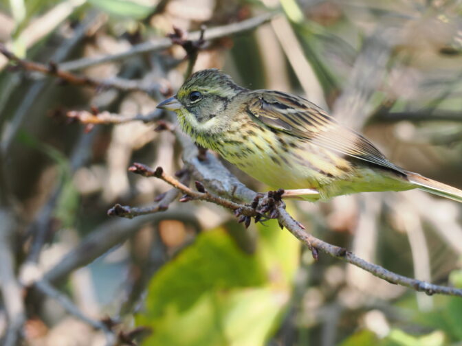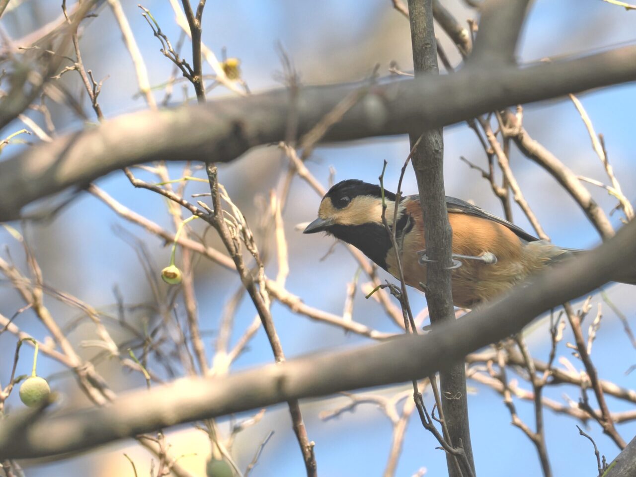早戸川川原の寒桜の並木の中から、ひょっこりアオジが現れました。この周辺の藪では年中メジロ、シジュウカラ、ウグイスが採餌しています。秋から春のかけては、アオジも多数棲みついているようです。