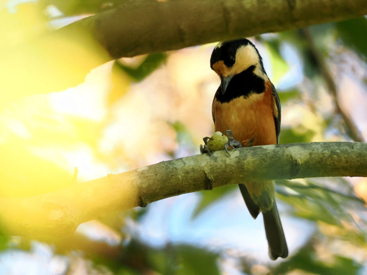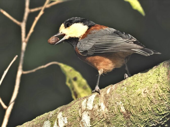 自衛隊駐屯地下風致林のエゴノキは昨年実がほとんどつかずエゴノキの実を啄むヤマガラの写真を撮れませんでした。今年も実の数が少しかかないので、諦めていましたが、その少ない実を採って食べている写真が撮れました✌︎(‘ω’)✌︎。ちなみに、一昨年はエゴノキの実が豊作で、たくさん写真が撮れました。