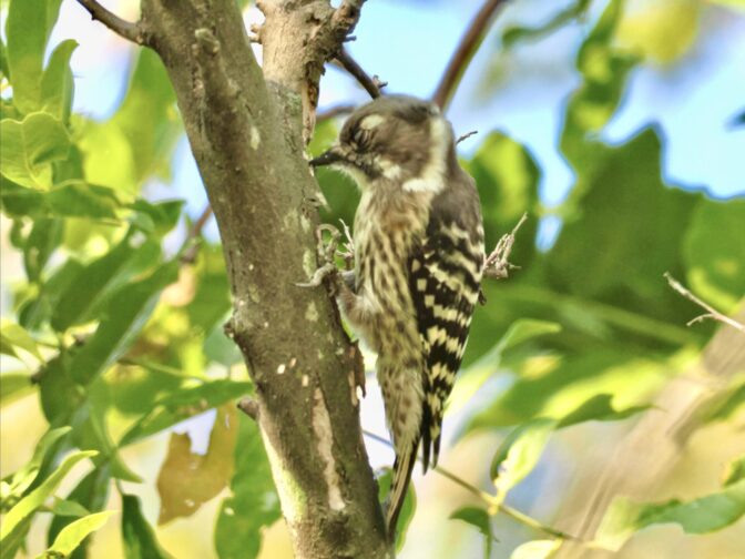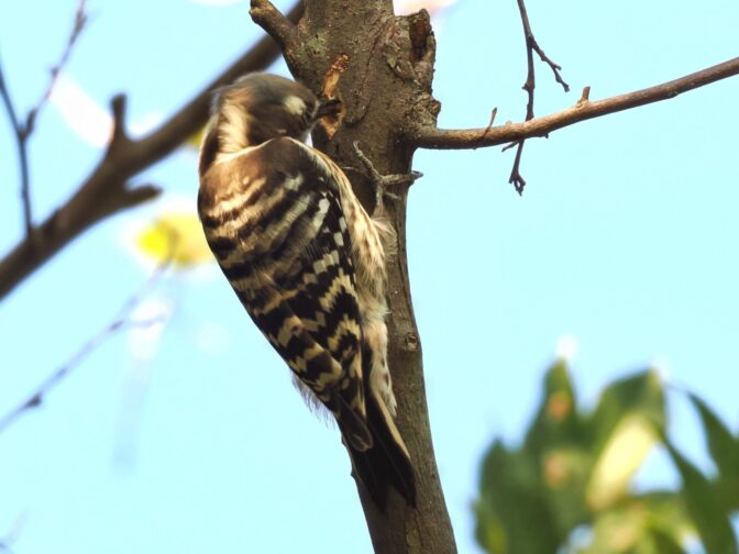 コゲラは早戸川川原、小場江用水路沿いの風致林でもよく見かけます。今回は、木に穴を穿つ様子が撮影できました✌︎(‘ω’)✌︎。