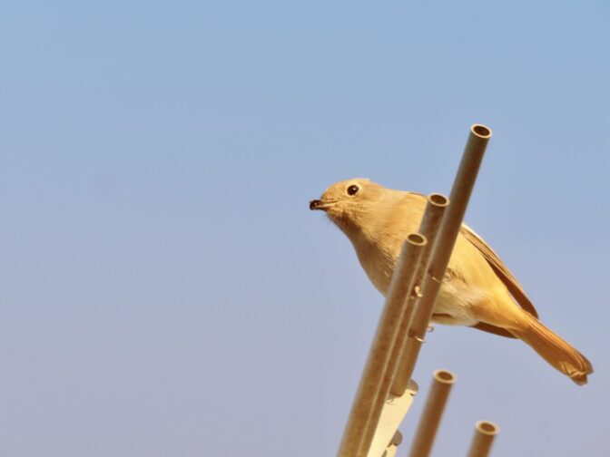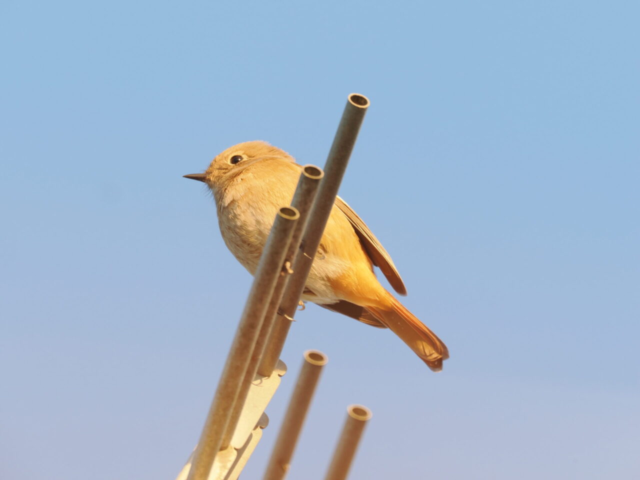12日晴天の早朝、屋根の上から「カッカ」と鳴き声、ベランダから身を乗り出し見上げるとTVアンテナにオジョウ(ジョウビタキ♀)の姿、カメラを取り出し撮影しました。撮影後よく見ると、ただ止まって鳴いているだけではなく、朝食の虫も捕まえていました✌︎(‘ω’)✌︎。