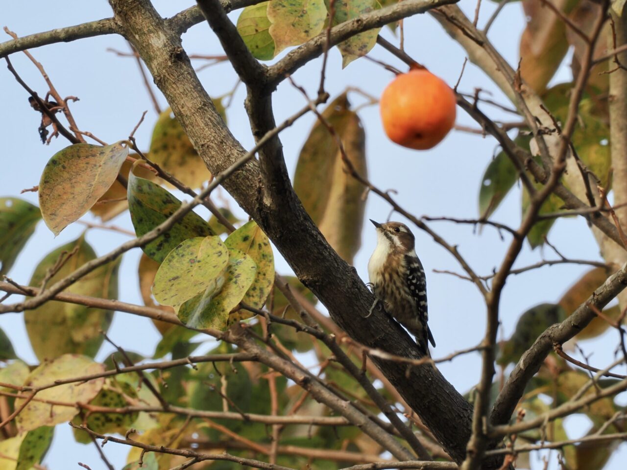 美味しそうな柿の実には目もくれず、好物の虫を探しているようです