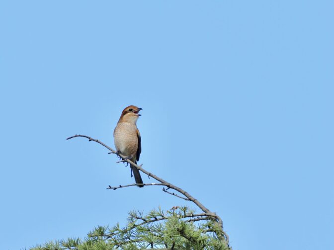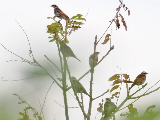 ツグミが渡ってくる頃には、モズの高鳴きもそろそろ終わる頃です。河川敷では、確定したナワバリへの侵入者の監視と餌の探すため灌木にその姿をよく見ることができ、ジョウビタキと並びこれからの格好の被写体です✌︎(‘ω’)✌︎