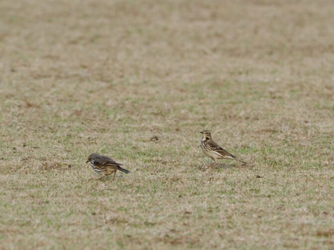 タヒバリ&ハクセキレイ@那珂川河川敷のサッカーグランド