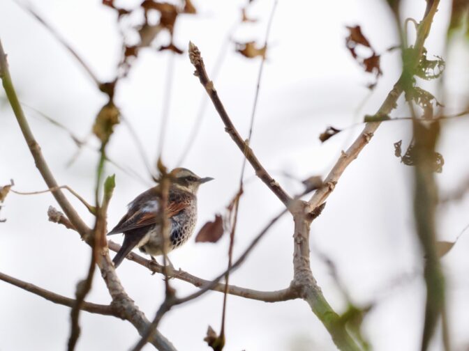 去年はほとんど見かけることがなかったツグミが現れました。14日午前、那珂川下流、河口から5km付近の川原で「ケケッ・・」という鳴き声。中州の木の枝に、ヒヨドリ大だが形の違う鳥がいたので、もしやツグミかと逆光でしたが撮影。明るさを補正して確認すると、ツグミでした✌︎(‘ω’)✌︎。15日の午後、勝田橋の下流の河川敷では数羽の群れの姿も撮影できました٩( ‘ω’ )و。