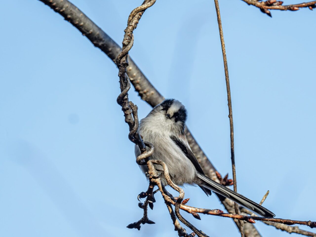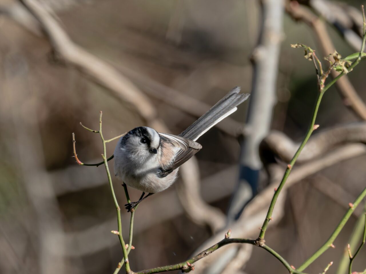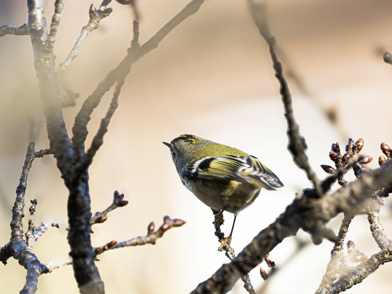 キクちゃん(キクイタダキ)に会えました、2度目です、1度目は’24年3月9日なので約2年ぶりの遭遇です✌︎(‘ω’✌︎ )。26日は風が強く吹いていて、いつも小鳥が水飲み&水浴びしている”小鳥の湯”にはヒヨドリさえ居ず、小鳥さんとの出会いは期待せず、ウオーキンのつもりで上流の方の足を伸ばしてみました。比較的風当たりの穏やかな、寒桜の並木の下側の藪からウグイスの地鳴きとジュリ・ジュリと言うエナガの群れの鳴き声が聞こえ、撮影開始。群れの中に、緑色だがメジロとは違う小さな小鳥が、動きが素早くてなかなか種類が特定できません٩( ‘ω’ )و。撮影チャンスを伺いながら、エナガとウグイスを撮影し約10分後に、寒桜の枝の上に現れたので、何枚か撮影することができました✌︎(‘ω’)✌︎。ただ、動きが素早く、ほとんどが藪の中での撮影なので、ピンボケや木の枝の影はご容赦下さいm(_ _)m。