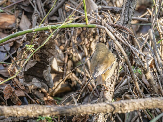 ジュリ・ジュリと賑やかな藪の下の方で、鶯がジャッ・ジャッと地鳴きしながら採餌していました。