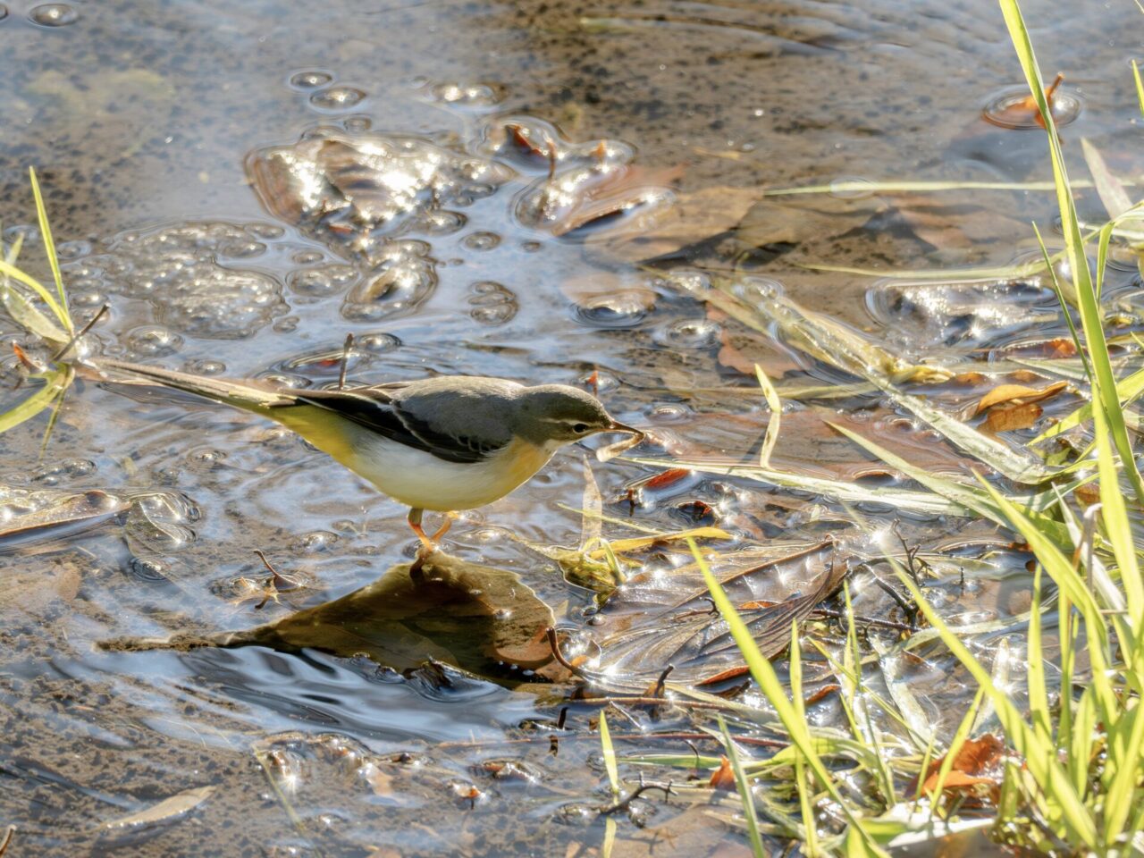 流の澱みでレイちゃんが採餌していました、逆光気味でしたがチャレンジ٩( ‘ω’ )و。
