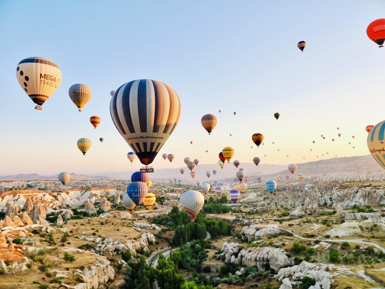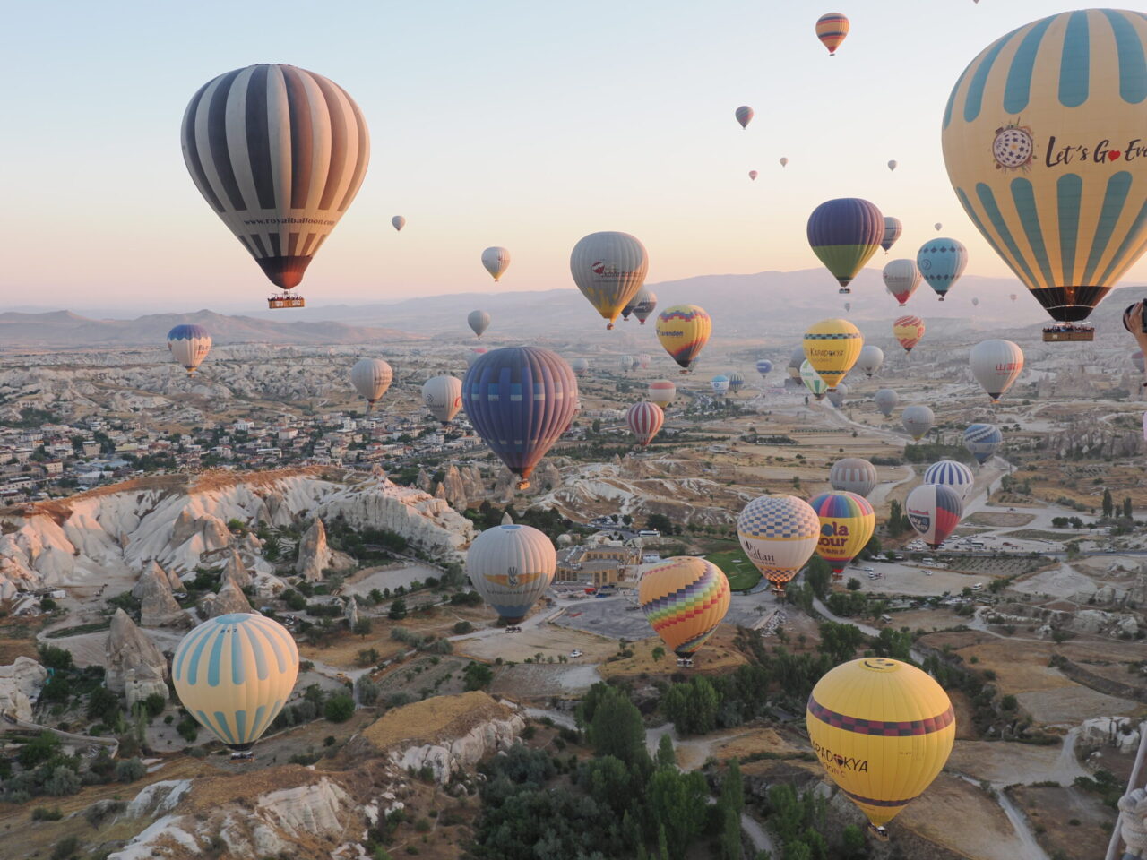 気球遊覧は早朝に出発するので、上空から見る雄大なカッパドキアの風景が朝焼け〜朝日に照らされ一層引き立ちます🤗