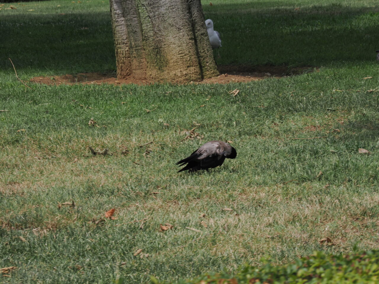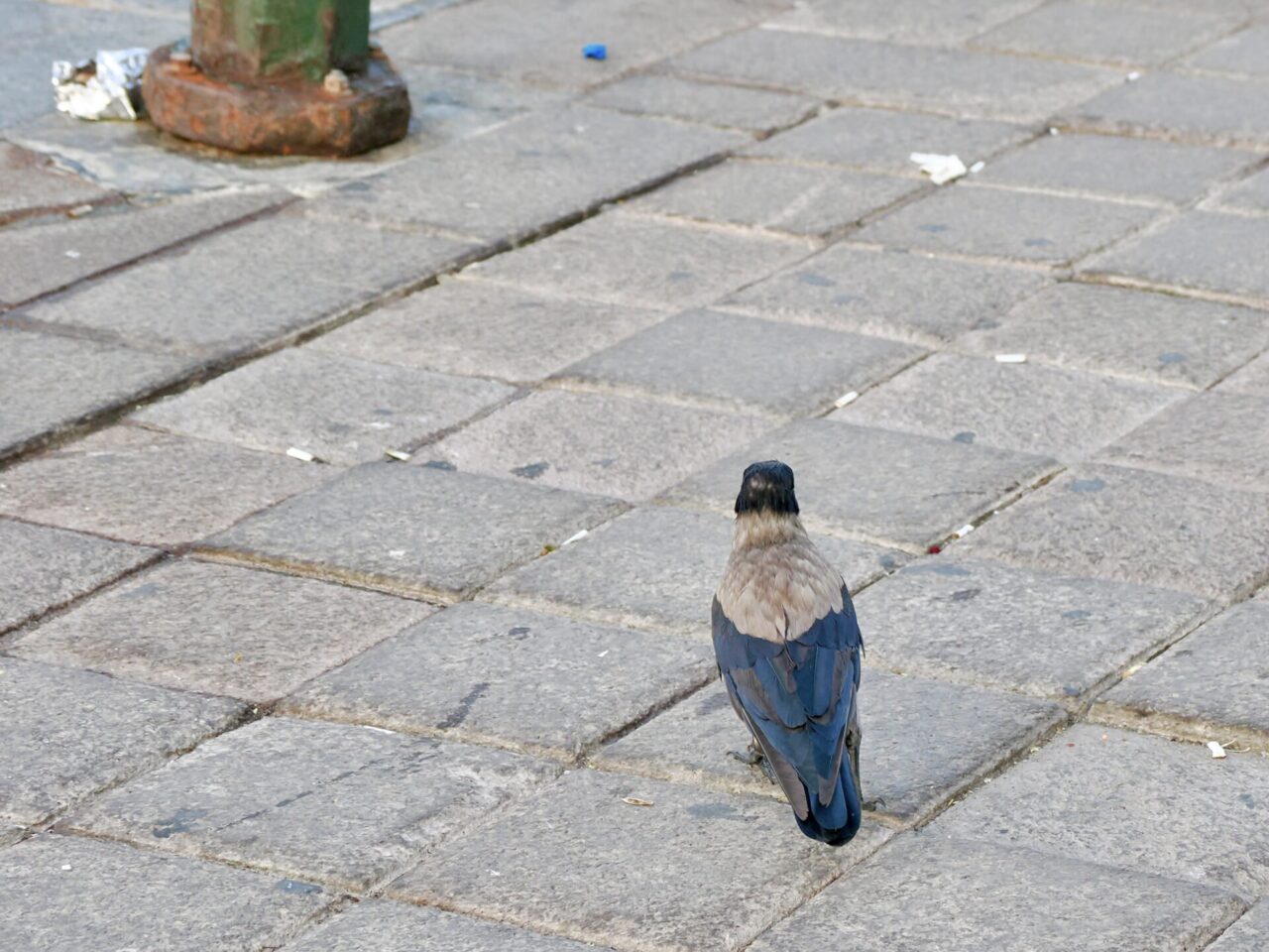 羽の色はツートンカラーだが、日本のカラスと同じように残飯はご馳走のようです😅