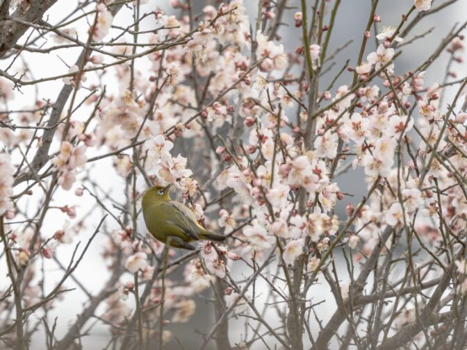 自宅の前の家の庭の梅の木は、早咲きなの上今年は例年よりさらに早く1月中頃から花が咲いています。その花の蜜を求め、メジロも集まってくるのでパシャリ✌︎(‘ω’✌︎ )。また、久々に現れたオジョウ(ジョウビタキ♀)も至近距離でパシャリ✌︎(‘ω’)✌︎。