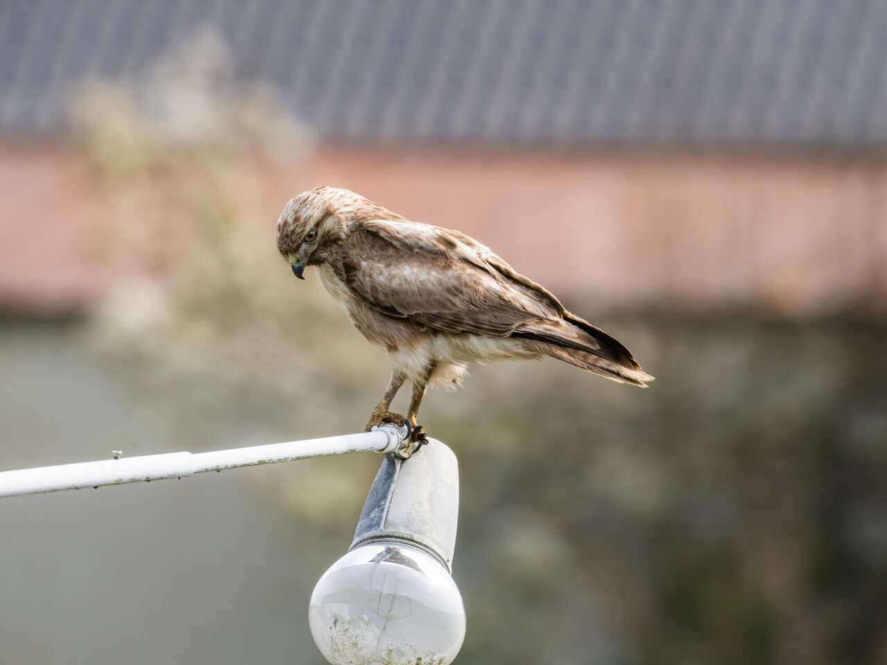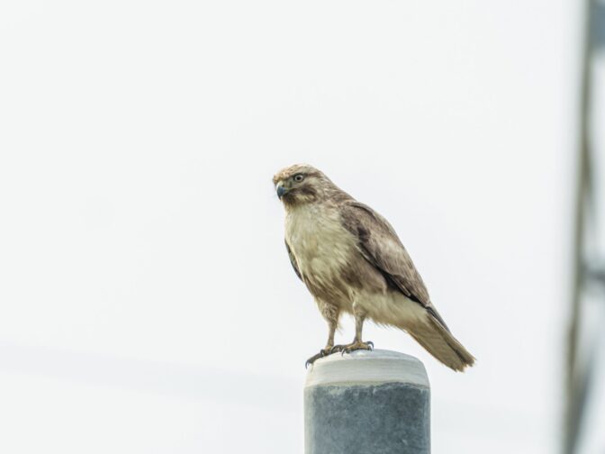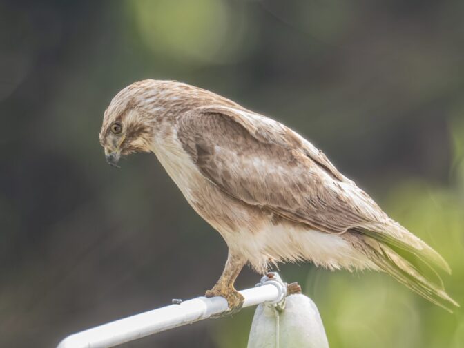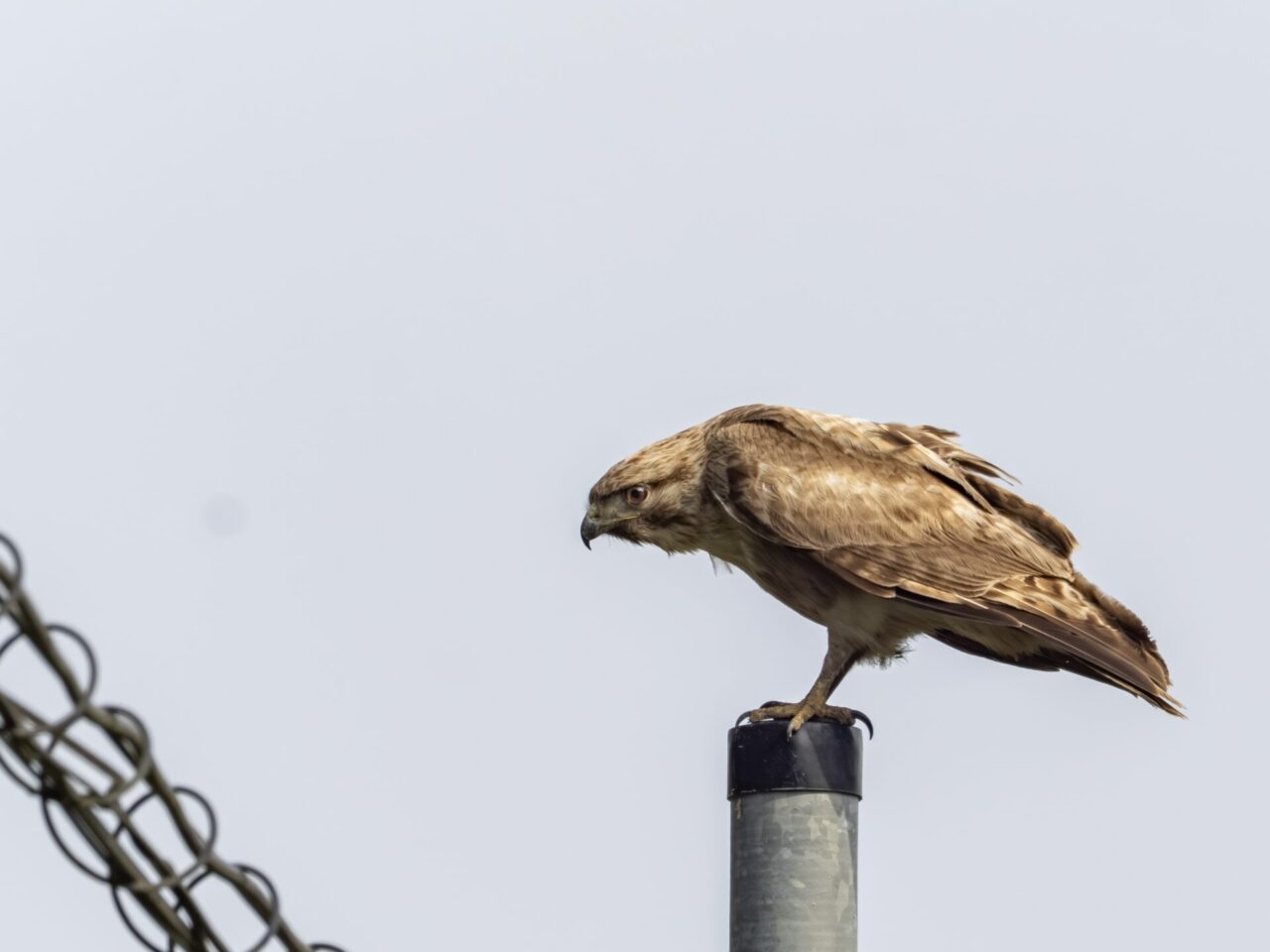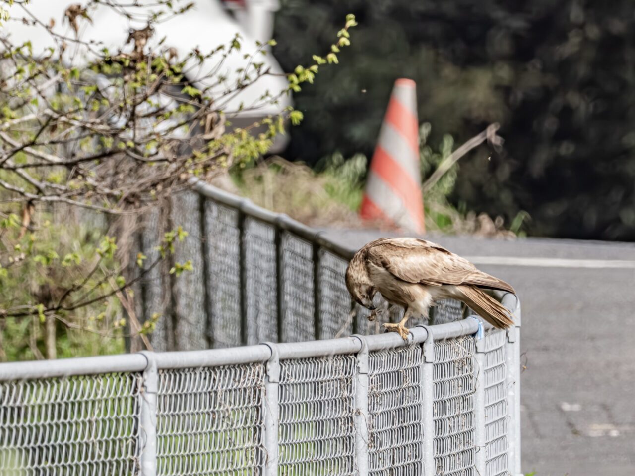 自衛隊駐屯地下の小場江用水路沿いを散歩中に、路端の草むらからノスリが飛び出し、フェンスに止まり何かを食べていました。とりあえず、カメラをリュックから取り出し、パシャリパシャリ撮影しました✌︎(‘ω’)✌︎