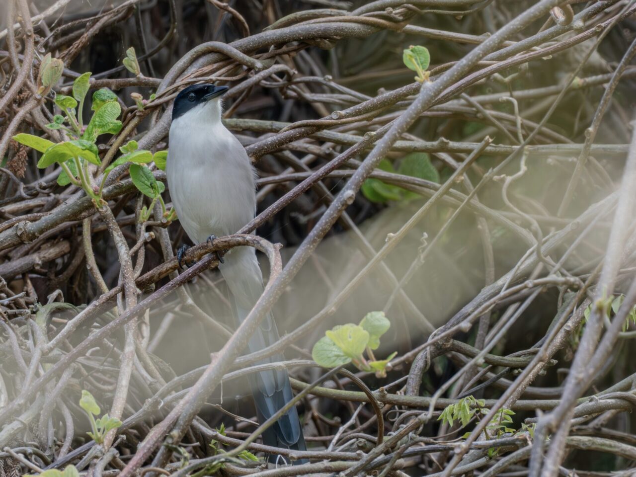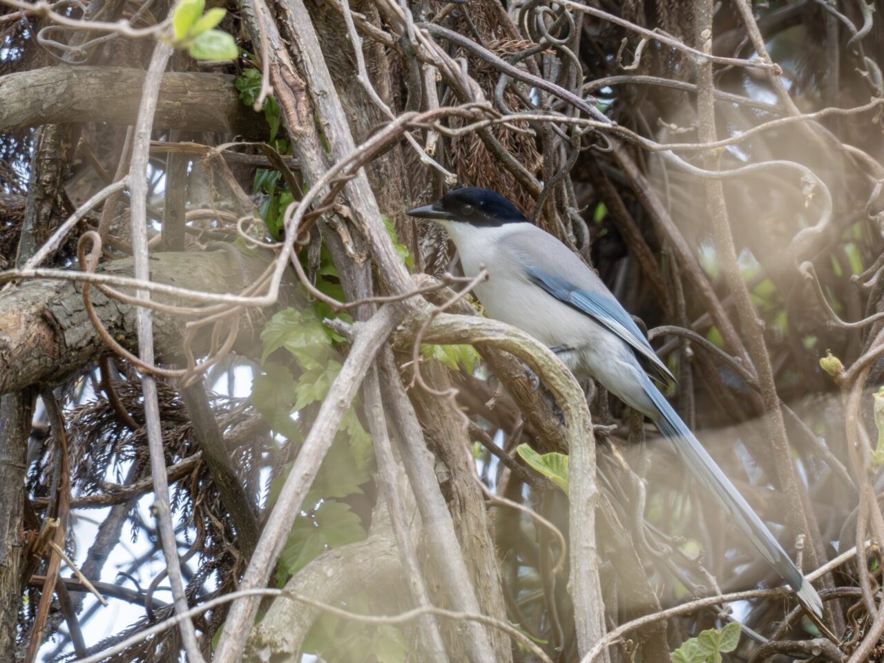 早戸川の川原の樹林からは、ヒヨドリやコジュケイの賑やか鳴き声に混じって、ダミ声のようなカケスやオナガの鳴き声も聞こえます。小鳥の湯の上に聳える杉の木に絡まった蔦の茂みの奥にはオナガの棲家があるようで、数羽のオナガが出入りしている様子が観察でき、数ショットだけですが久しぶりにオナガを撮影できました✌︎(‘ω’)✌︎。