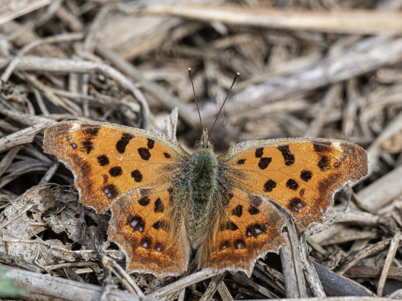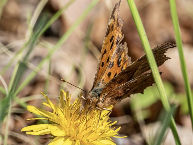 キタテハの翅にはビークマークが多数、自然の厳しさが垣間見える🤔