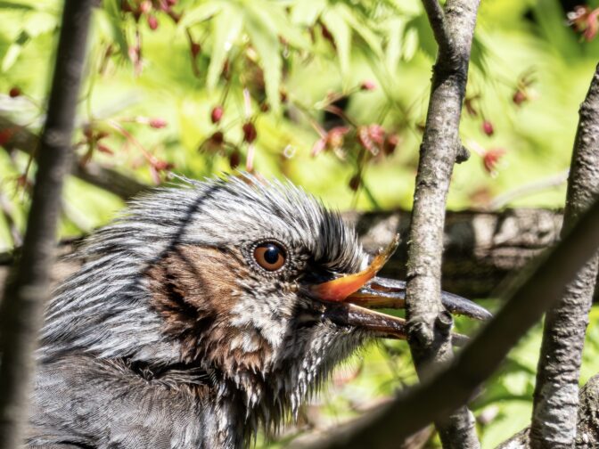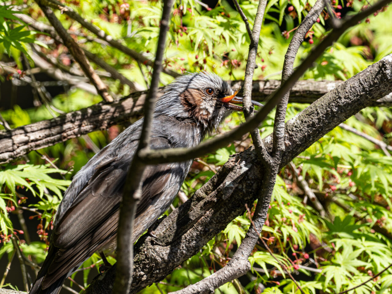 普段ヒヨドリは鳥撮りの対象外ですが、このヒヨドリは舌を出していたので、舌の先を観察できる期待で撮影